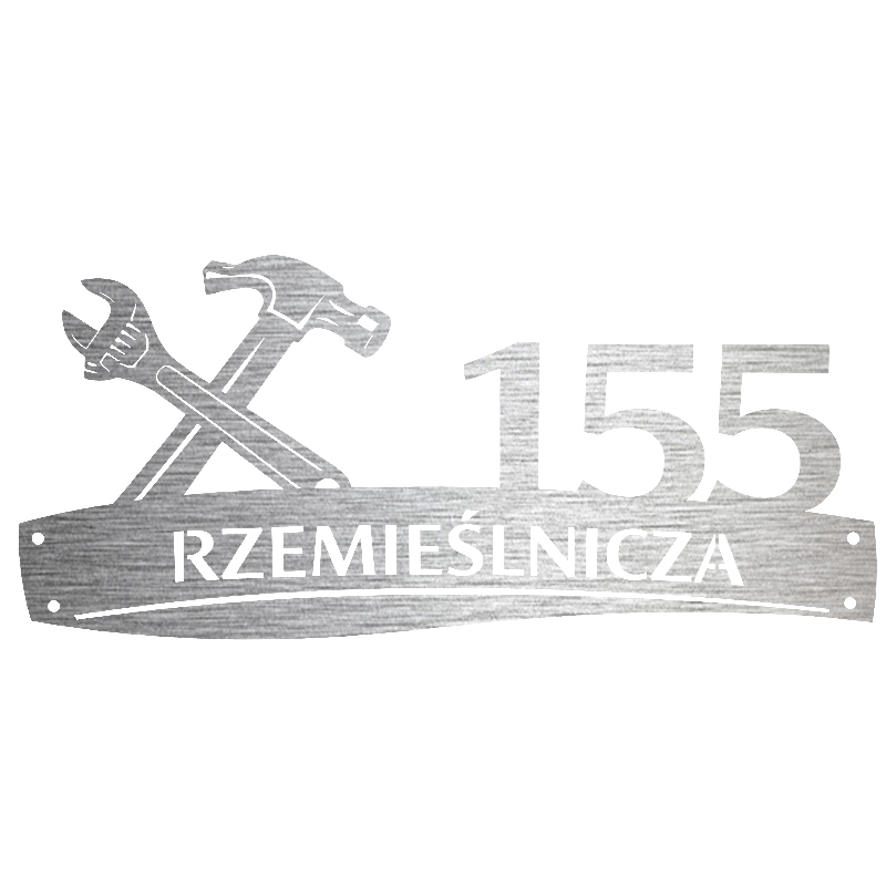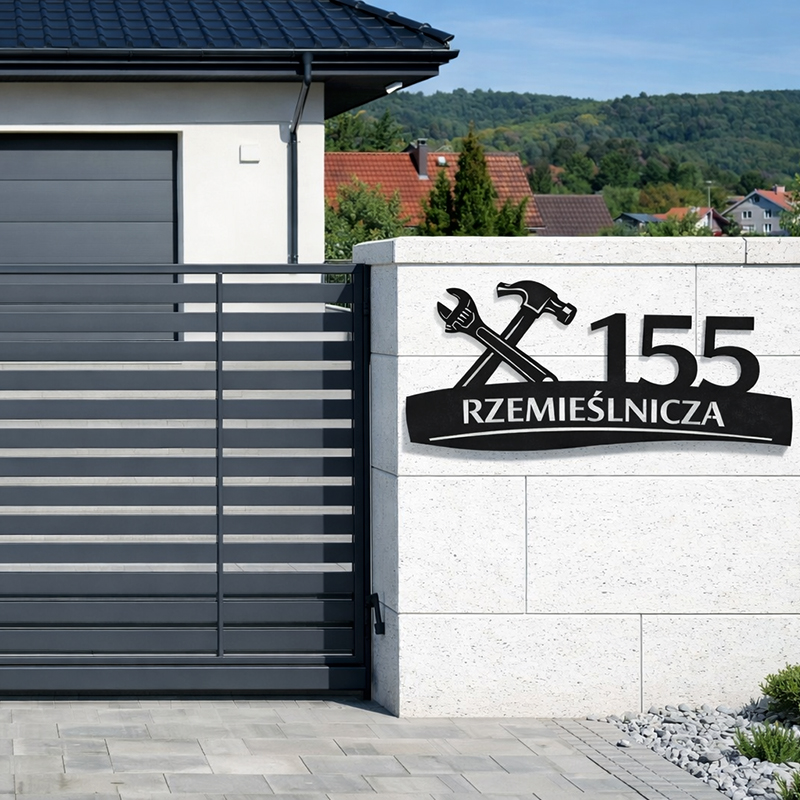 Metalowa tablica adresowa Rzemieślnicza z grafiką – trwałe i czytelne oznaczenie domu