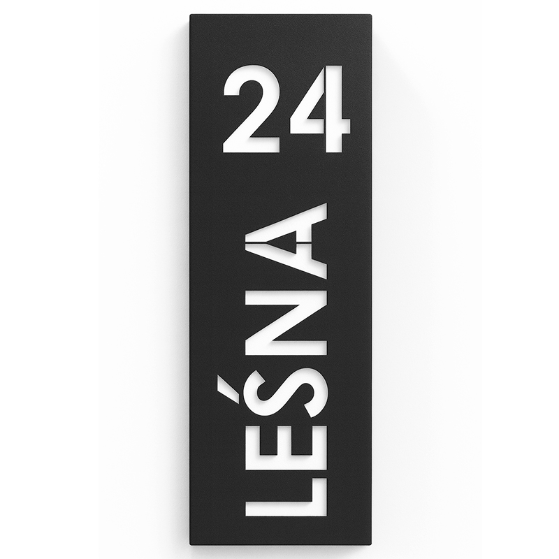 Stal konstrukcyjna lub nierdzewna gwarantuje stabilność oraz odporność na warunki zewnętrzne. Dzięki temu tabliczka świetnie sprawdza się na dowolnej elewacji – od tynku, przez cegłę, aż po drewno.
