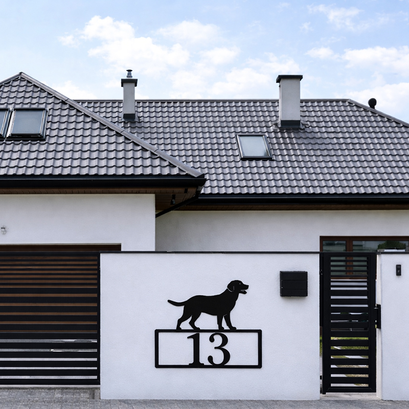 Tabliczka na dom z psem – wybierz rasę i numer domu, dopasuj styl do swojego wejścia